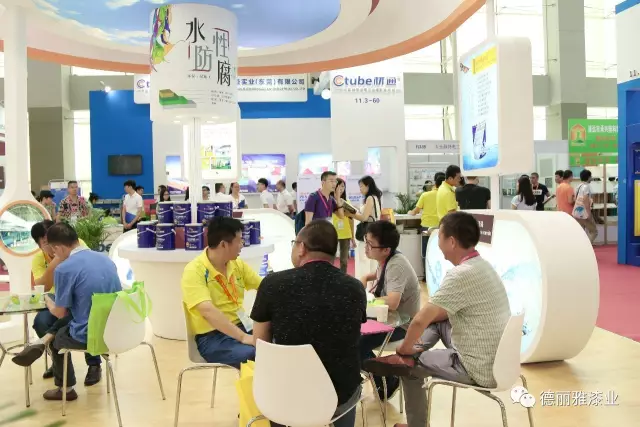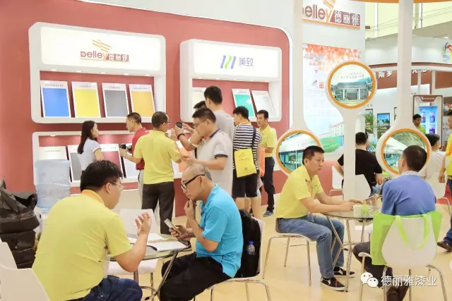 盡管開幕當(dāng)天下著漂泊大雨,展會還是吸引了眾多商戶前來觀展。德麗雅漆業(yè)的展位也是人氣爆棚。
