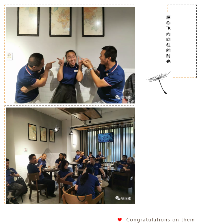 漫漫時光不會辜負你的努力和汗水,咖啡館里也藏著小小的驚喜禮物,祝賀胡凱、曾惠昭兩位精英憑著杰出的工作能力晉升到新的崗位。
