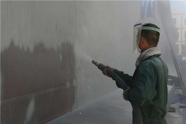 濕噴砂:利用壓縮空氣將全濕的磨料帶出,高速噴射到鋼材表面,除去金屬表面的鐵銹,氧化皮及各種腐蝕物質(zhì),解決了干噴砂污染問題,但基材表面會有閃銹產(chǎn)生,因此要加入緩蝕劑。此法在國外應(yīng)用已較為廣泛。